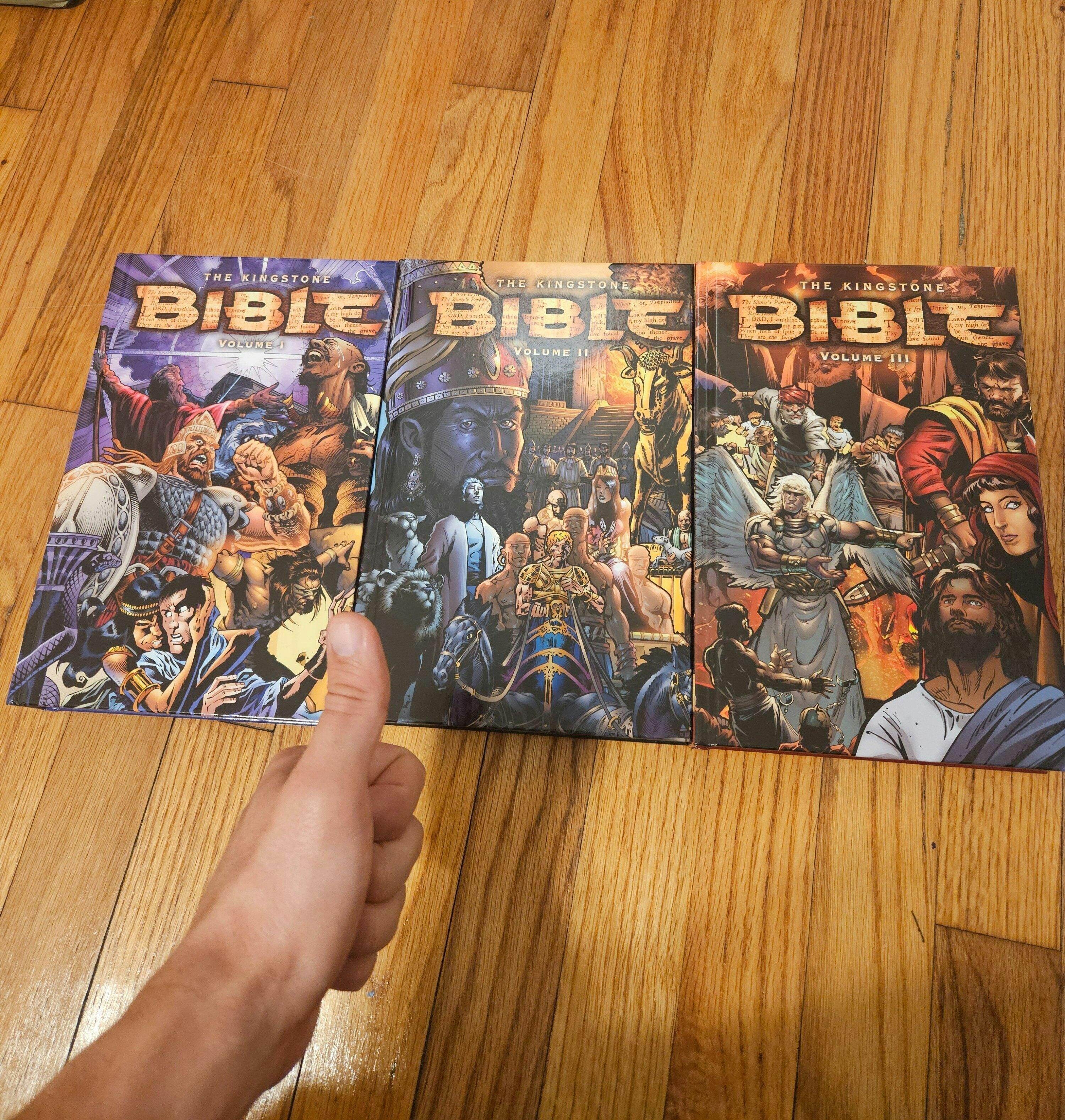 Thank you for making such wonderful art to keep me engaged and interested in reading the Bible and getting a visual look into the powerful Word of God! I'm inspired and excited to turn each page to experience the majestic images in these books! One of the best purchases that I've made. Hallelujah! Thank you to a coworker that put me on to this. And a huge thank you to Kingstone for working so hard to bring us this illustrated Bible.